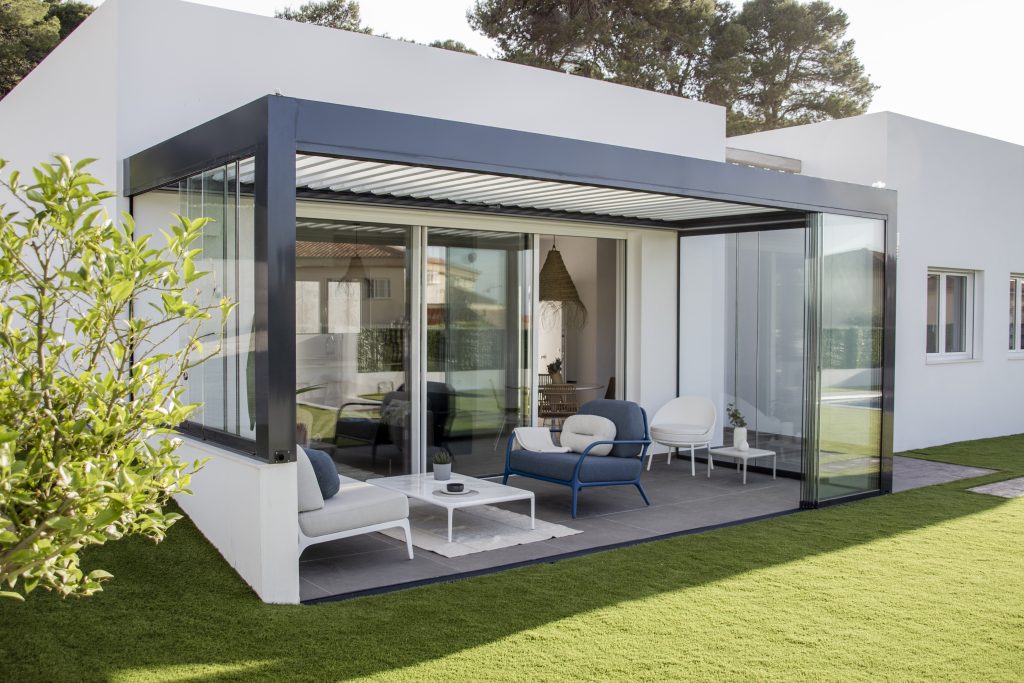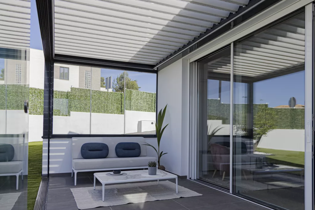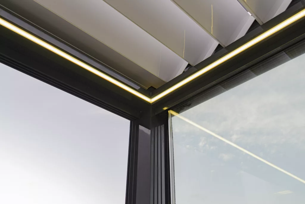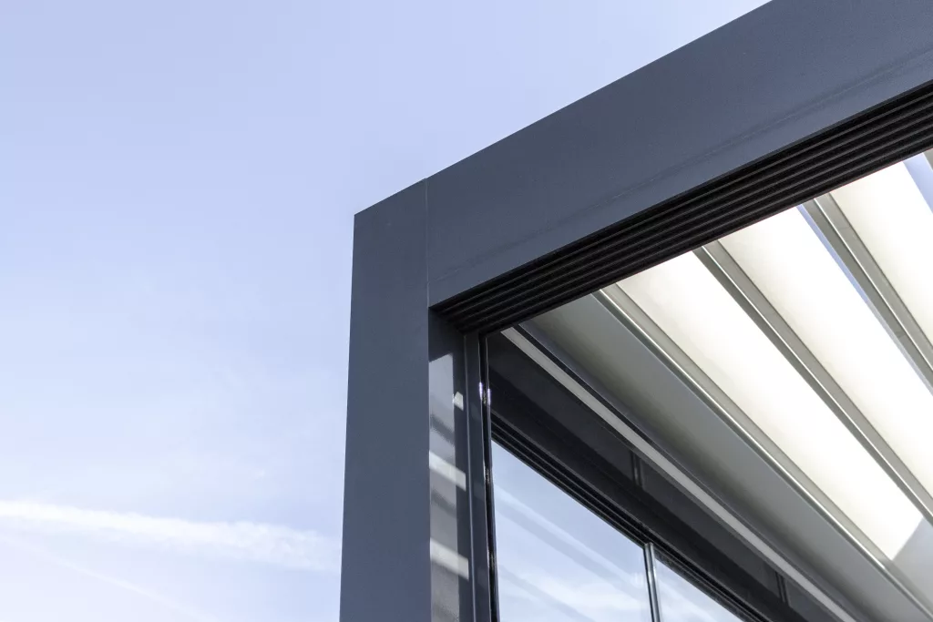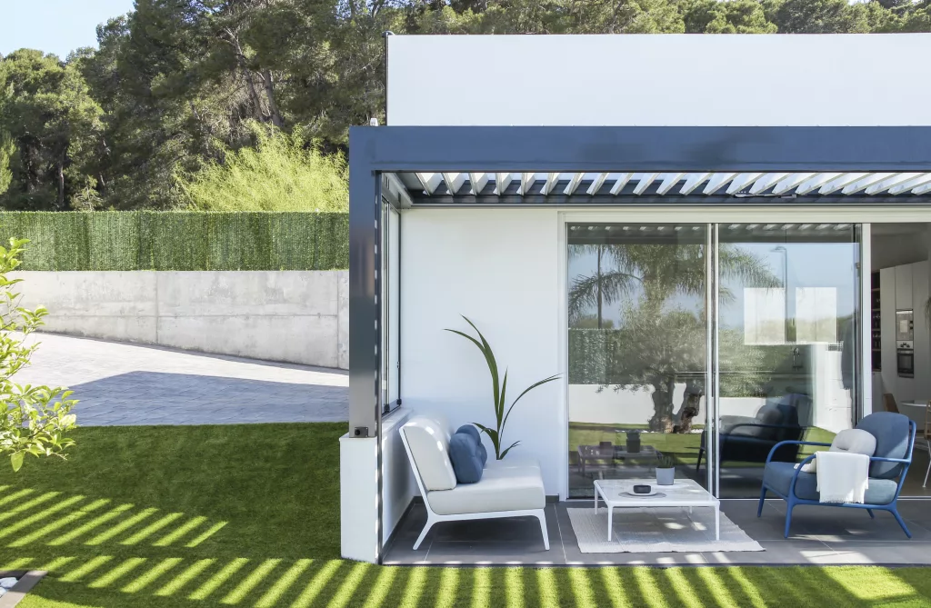 Nuestras pérgolas bioclimáticas cuentan con las lamas de mayor envergadura del mercado, de 270 mm, lo que permite una excelente entrada de luz y aire, proporcionando una sensación de apertura y amplitud en tu terraza. Las lamas son motorizadas y se controlan con un mando a distancia, desde el cual también puedes gestionar todas las opciones adicionales de la pérgola.