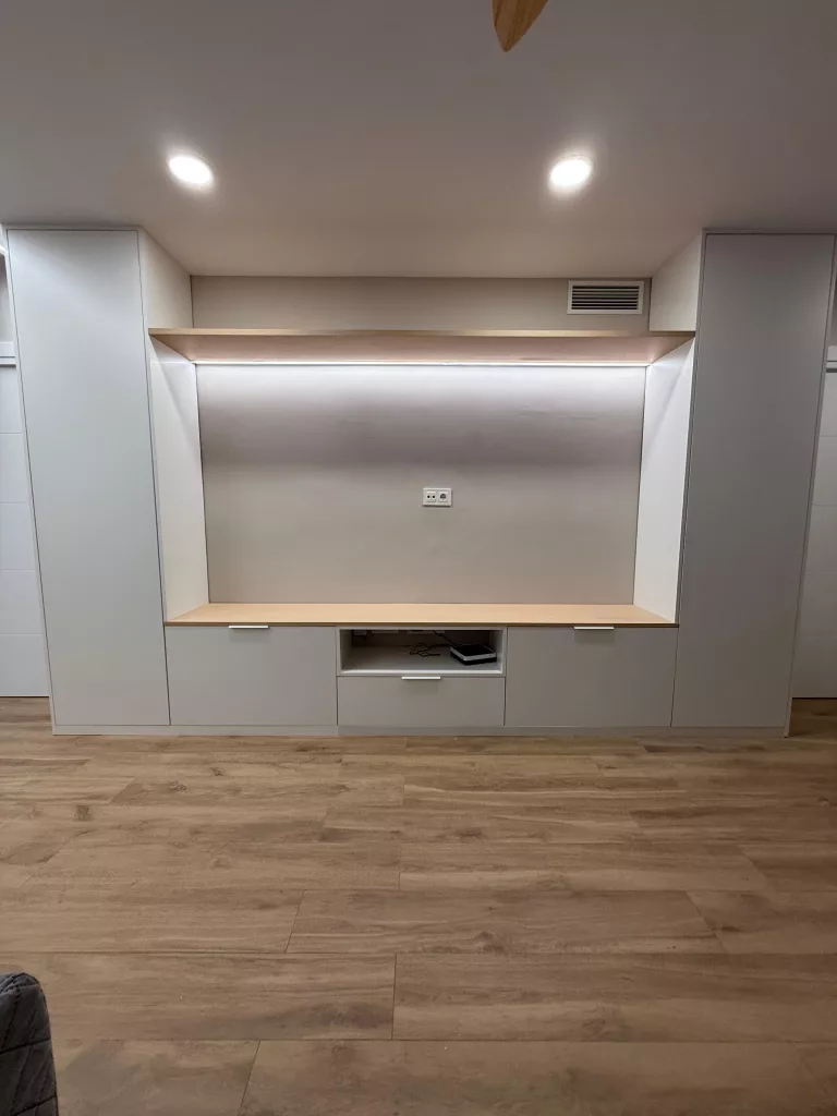 Transformamos este piso en un espacio lleno de estilo y funcionalidad, combinando muebles en blanco premium con la calidez del roble aurora. 🪵🤍