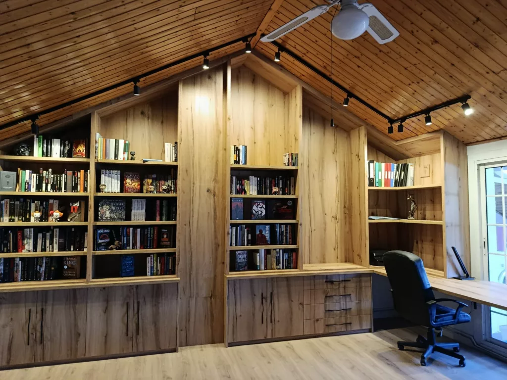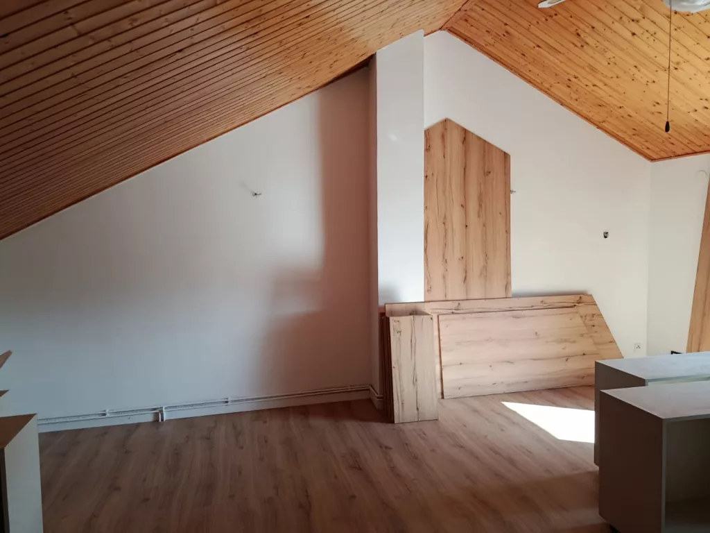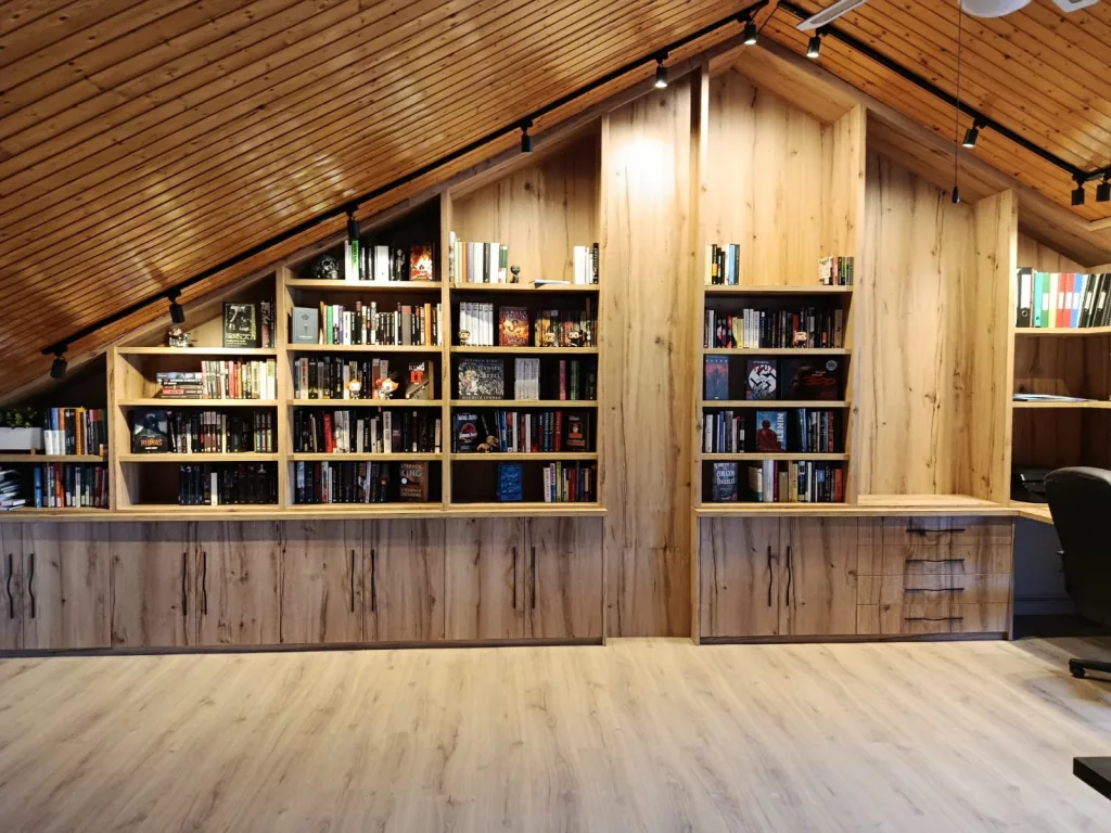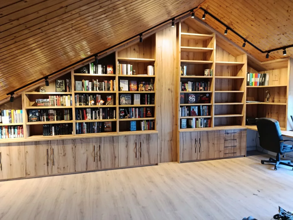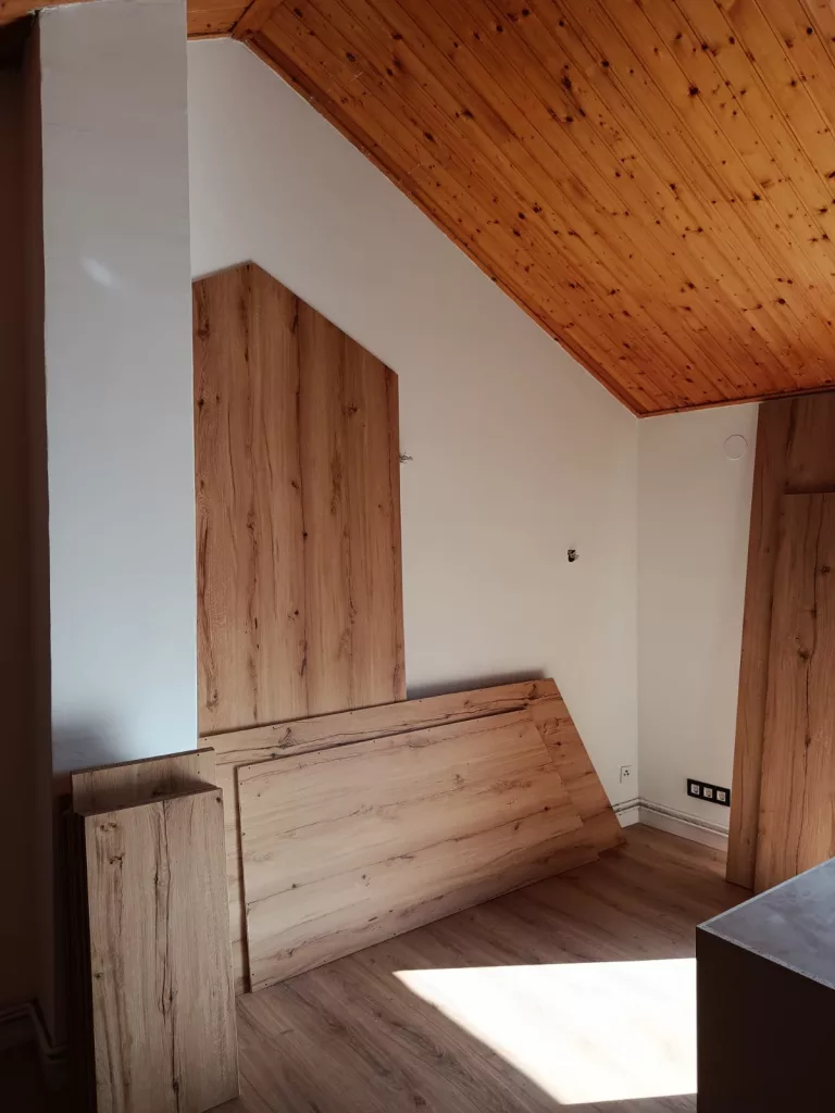 Transformación completa de un espacio bajo cubierta en un armario a medida, adaptado al techo inclinado y optimizado al máximo.
