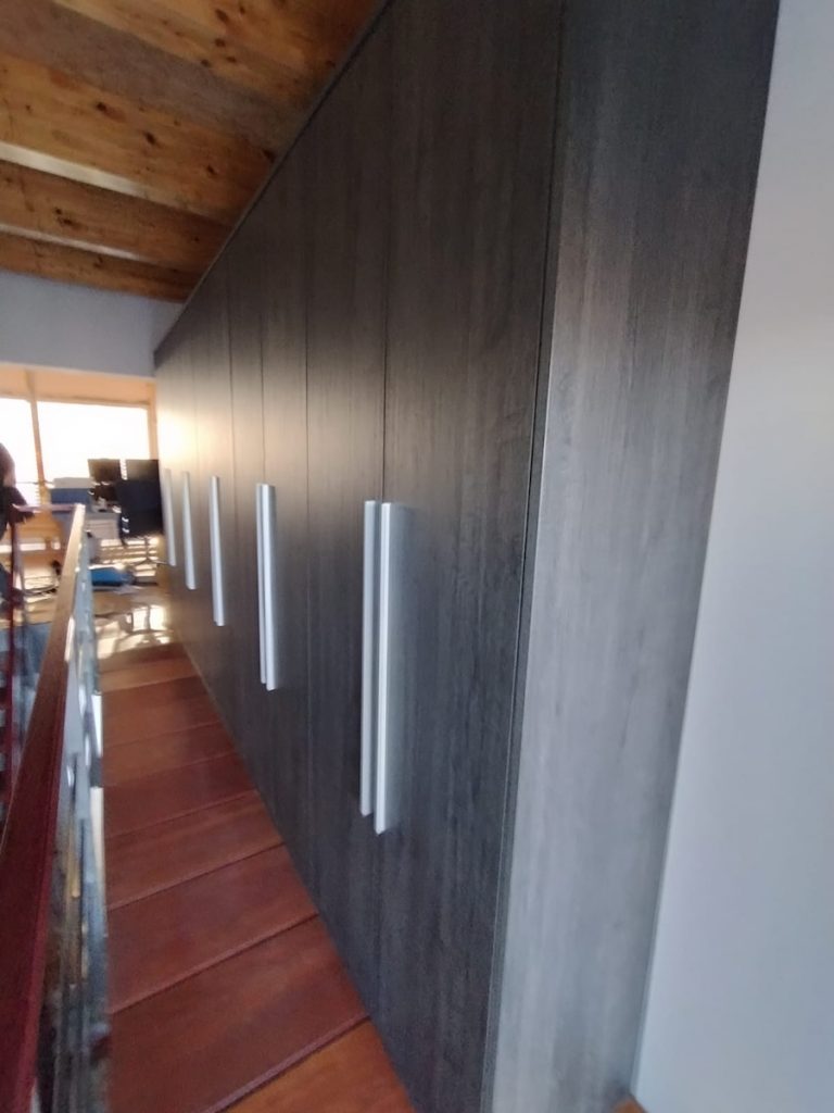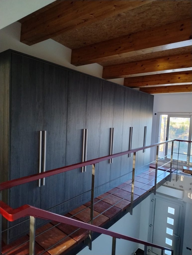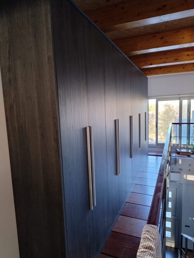 Fabricación a medida, que nos da la posibilidad de aprovechar hasta el último centímetro. Puertas en vidrio, chapas de madera natural, lacado, melamina o la combinación de cualquiera de ellas. Puertas practicables, plegables o correderas.