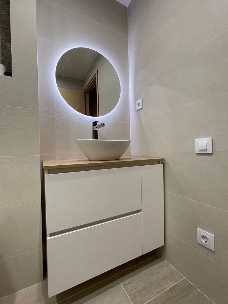 Además, destacamos nuestro espejo retroiluminado con LED, que combina estilo y funcionalidad para crear un ambiente acogedor y contemporáneo en tu baño. ¡Déjanos crear tu oasis de tranquilidad y confort! Contáctanos para más información sobre nuestros servicios de diseño de baños.