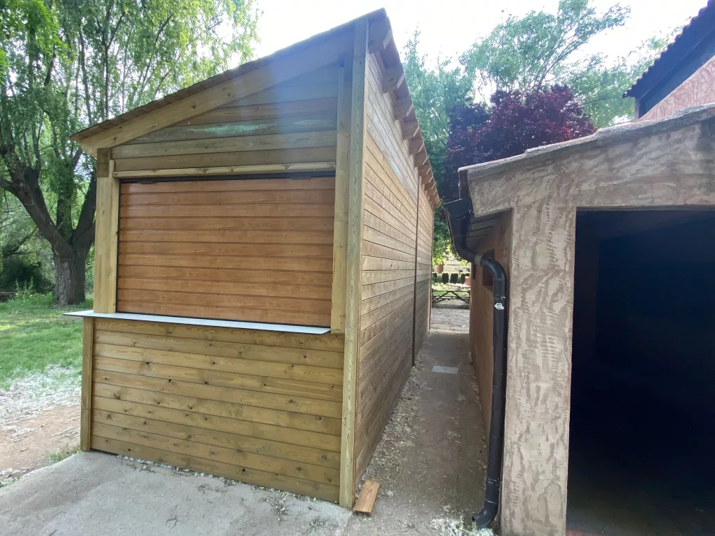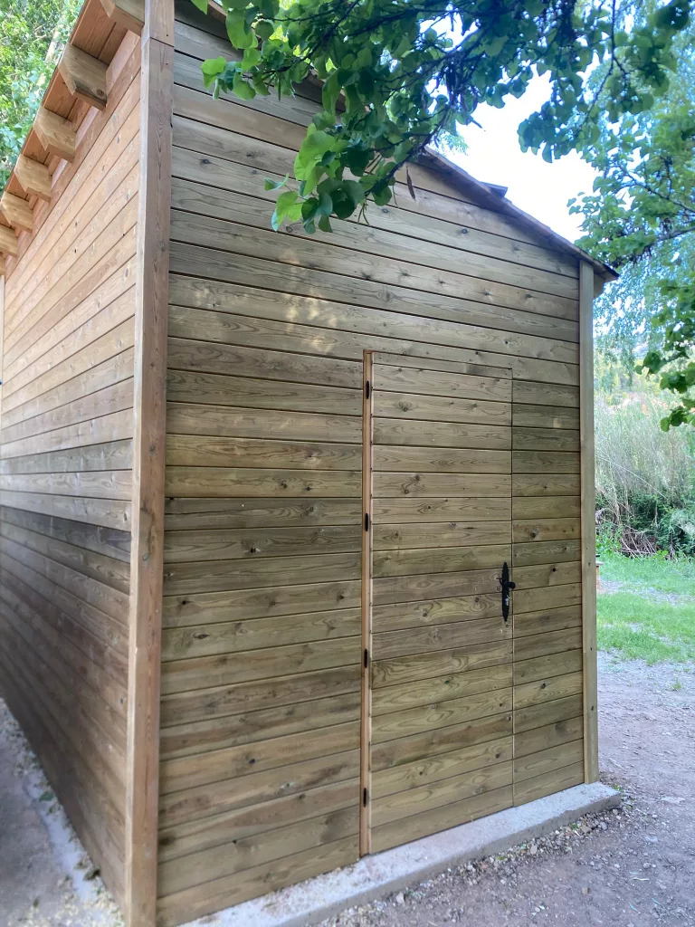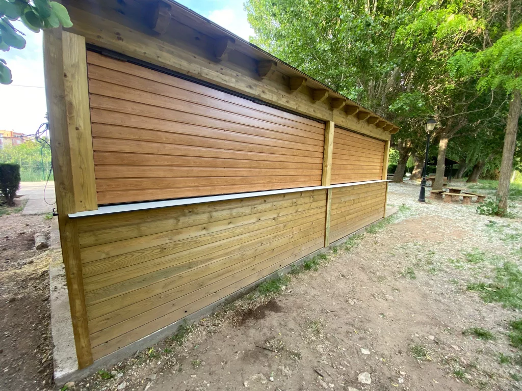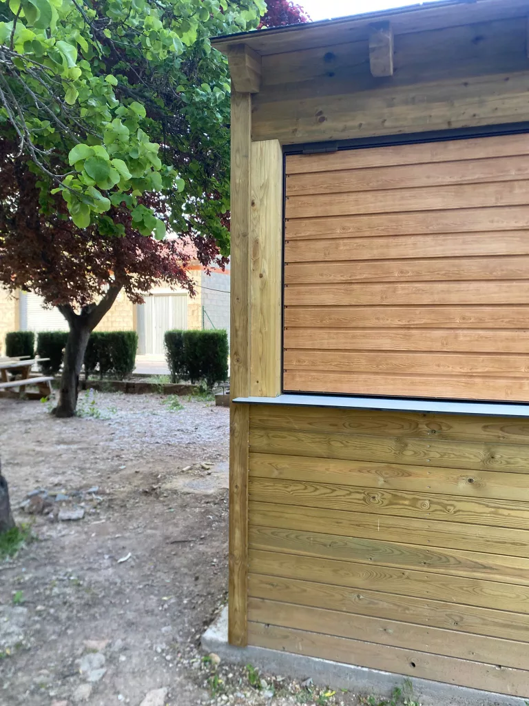 Caseta a medida fabricada en pino cuperizado, pensada para resistir el paso del tiempo y las condiciones exteriores.