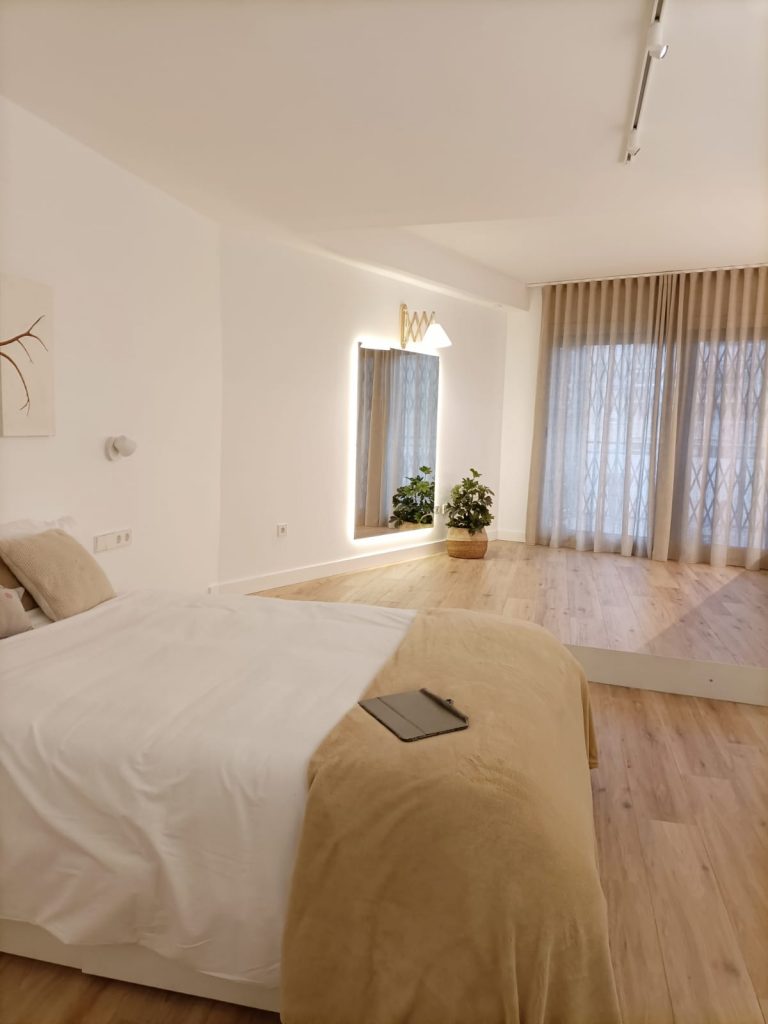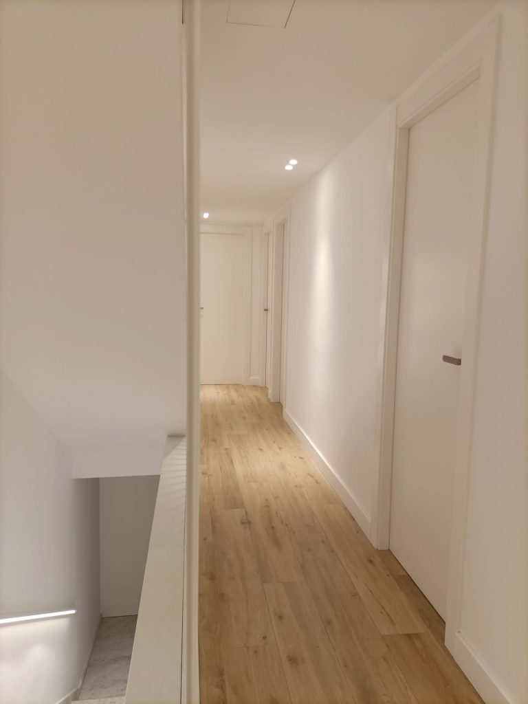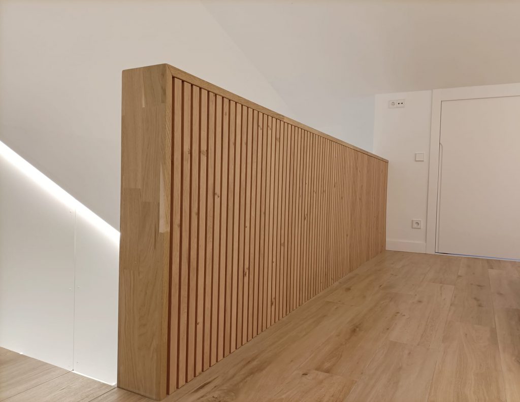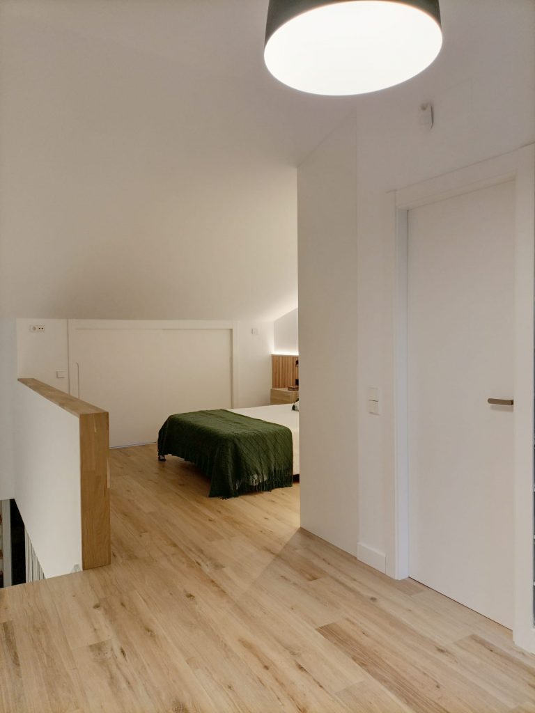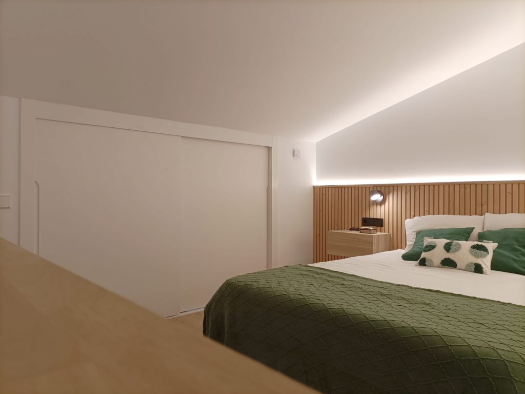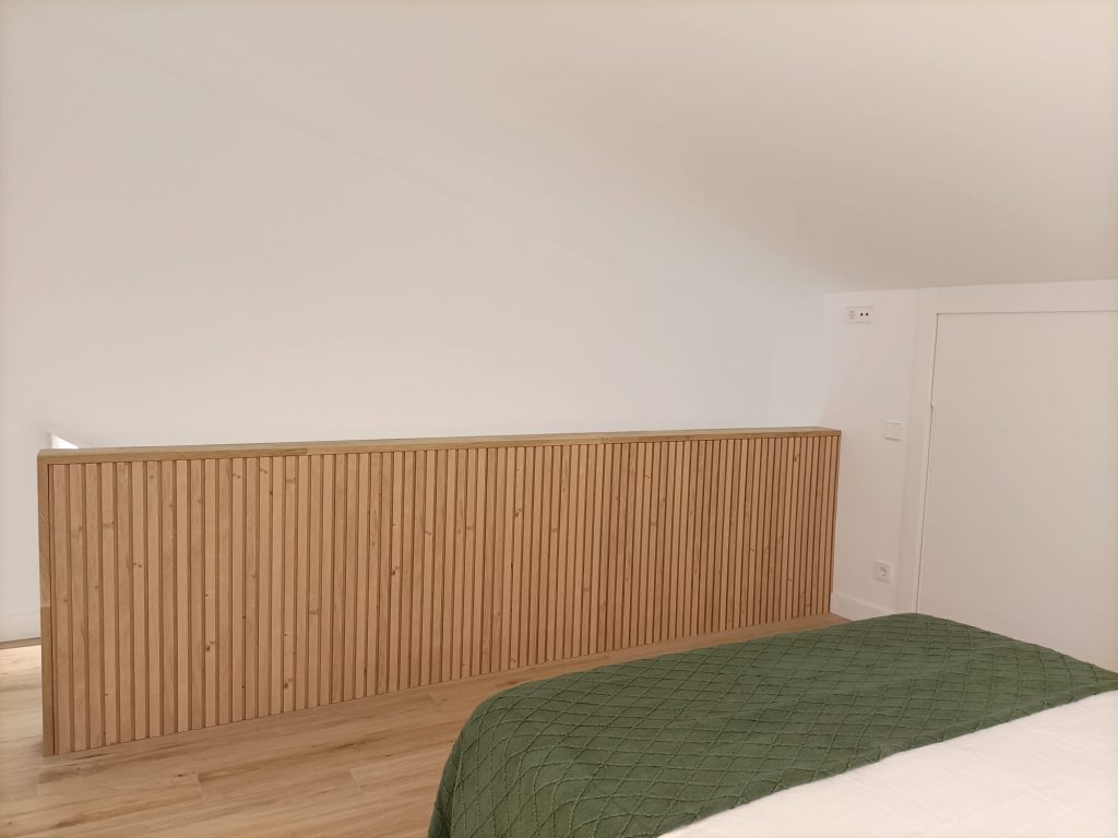 ¡El encanto de la madera en cada rincón de tu hogar! Desde el suelo hasta los detalles de mobiliario, hemos transformado este piso con la calidez y la belleza natural de la madera. Con suelo de parquet Finsa Roble Fado Gavia, cabezal de cama en haya natural y estantes de librería en haya natural, cada espacio respira elegancia y confort.