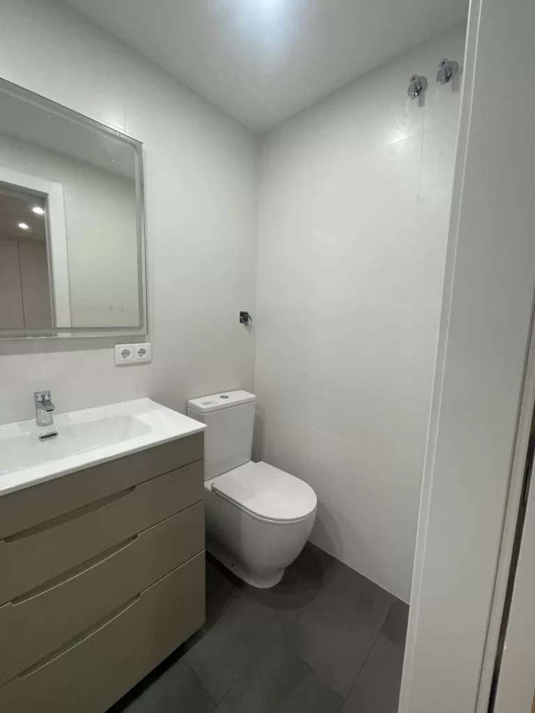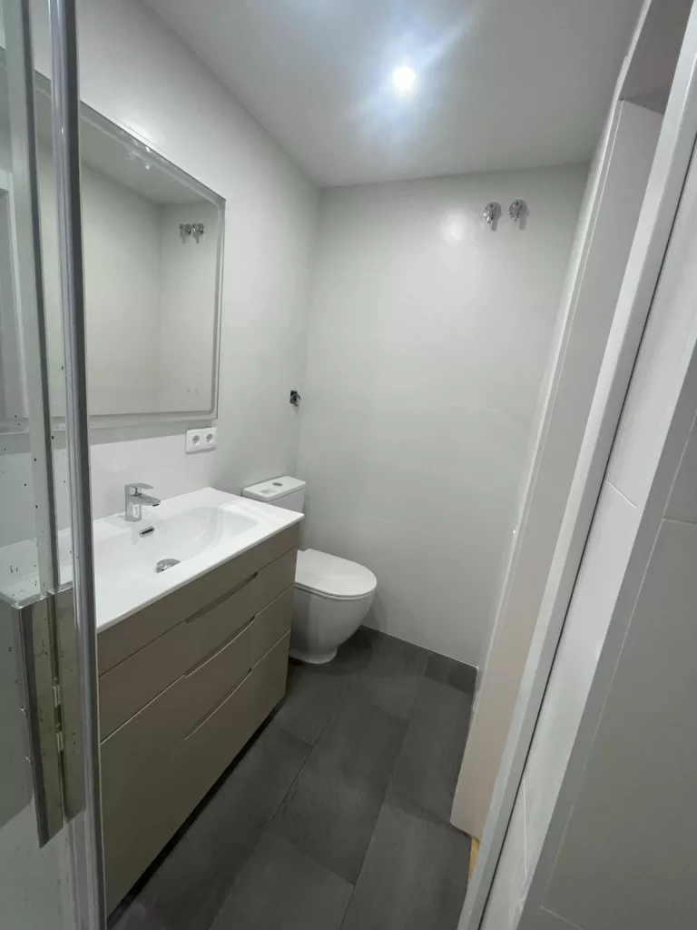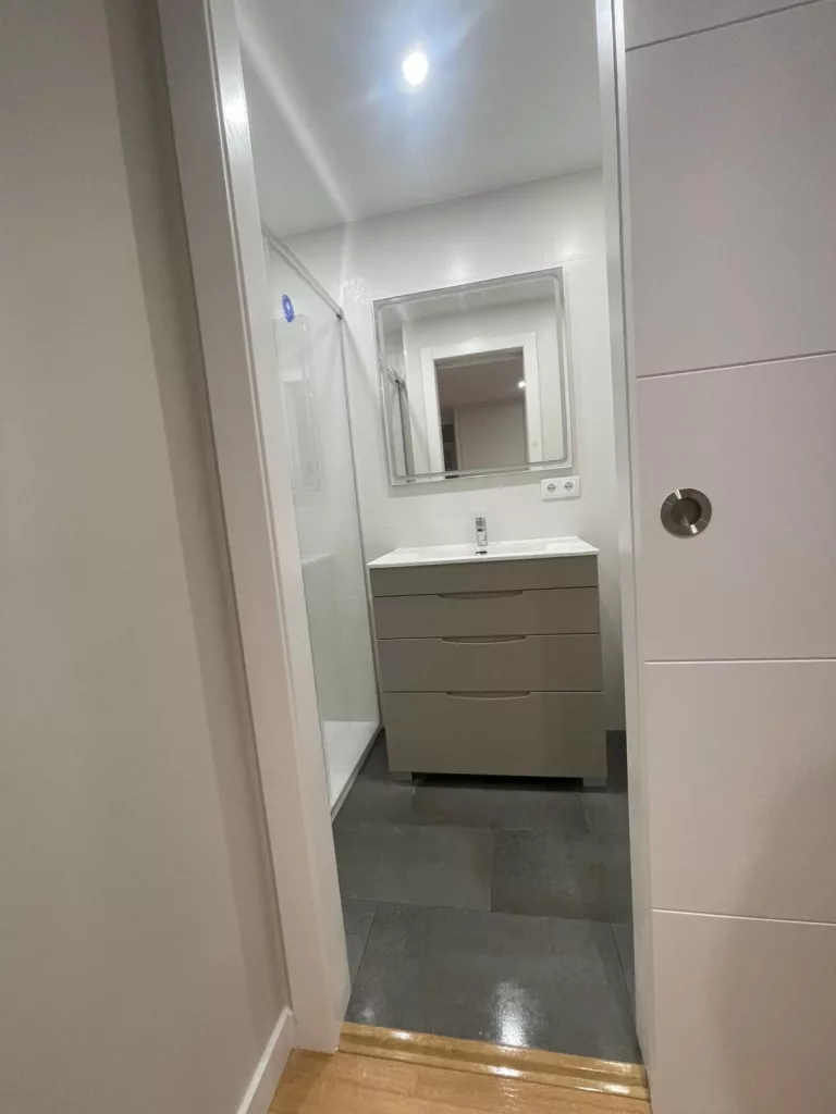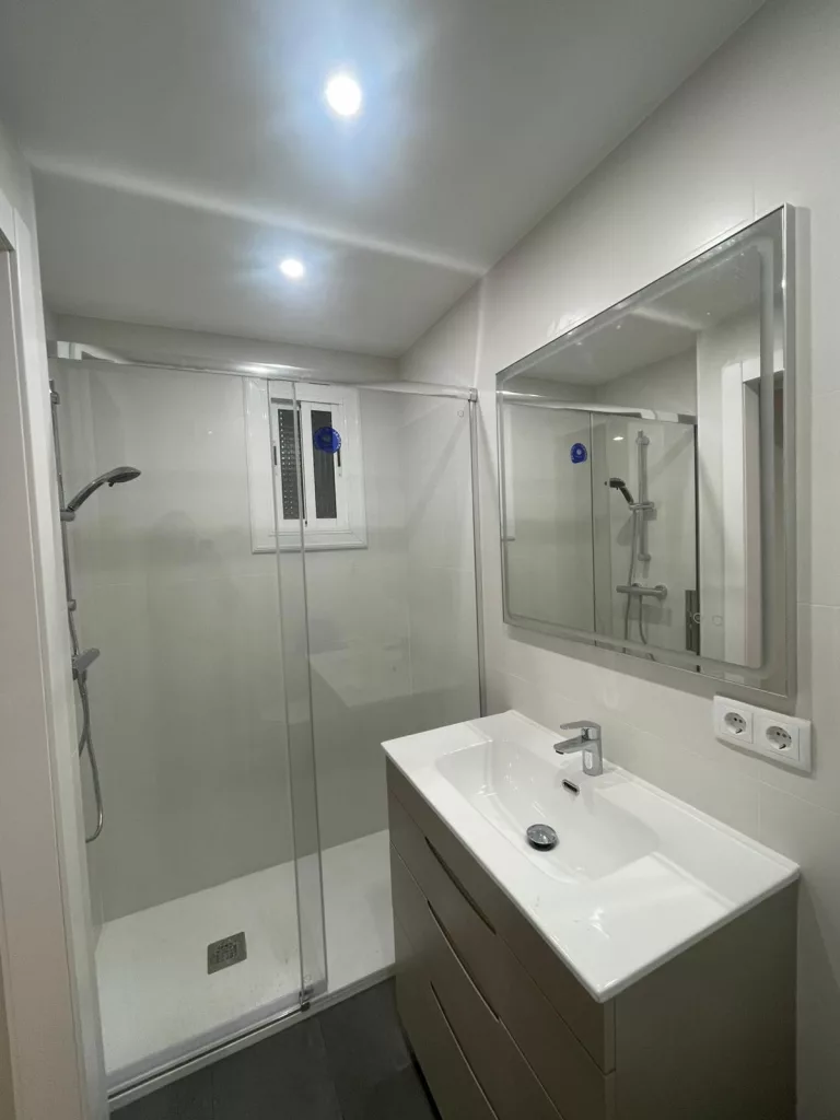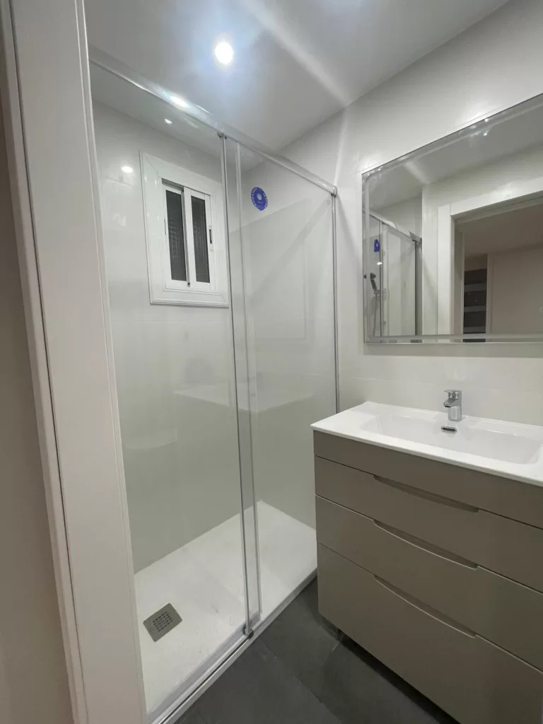 🛁 Baños: Paredes en porcelánico blanco rectificado y suelo en porcelánico gris, un contraste limpio y contemporáneo.