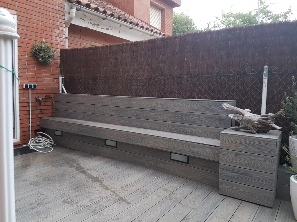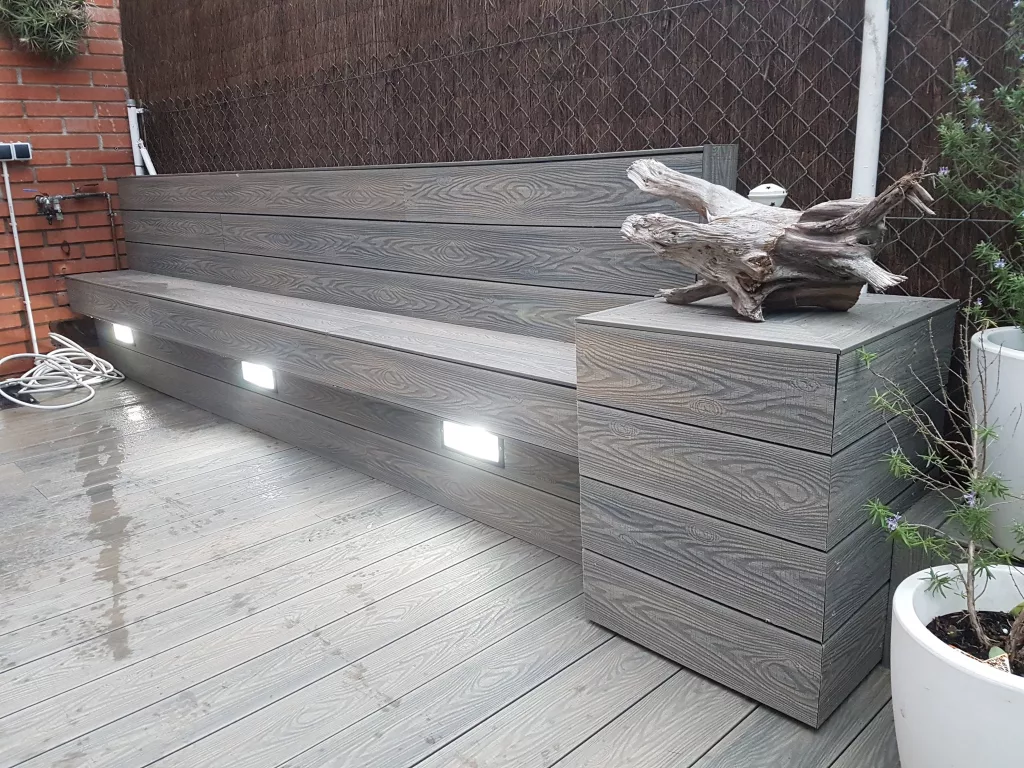 Tarima y banco fabricado con NEWTECHWOOD ULTRASHIELD VINTAGE ANTIQUE.
